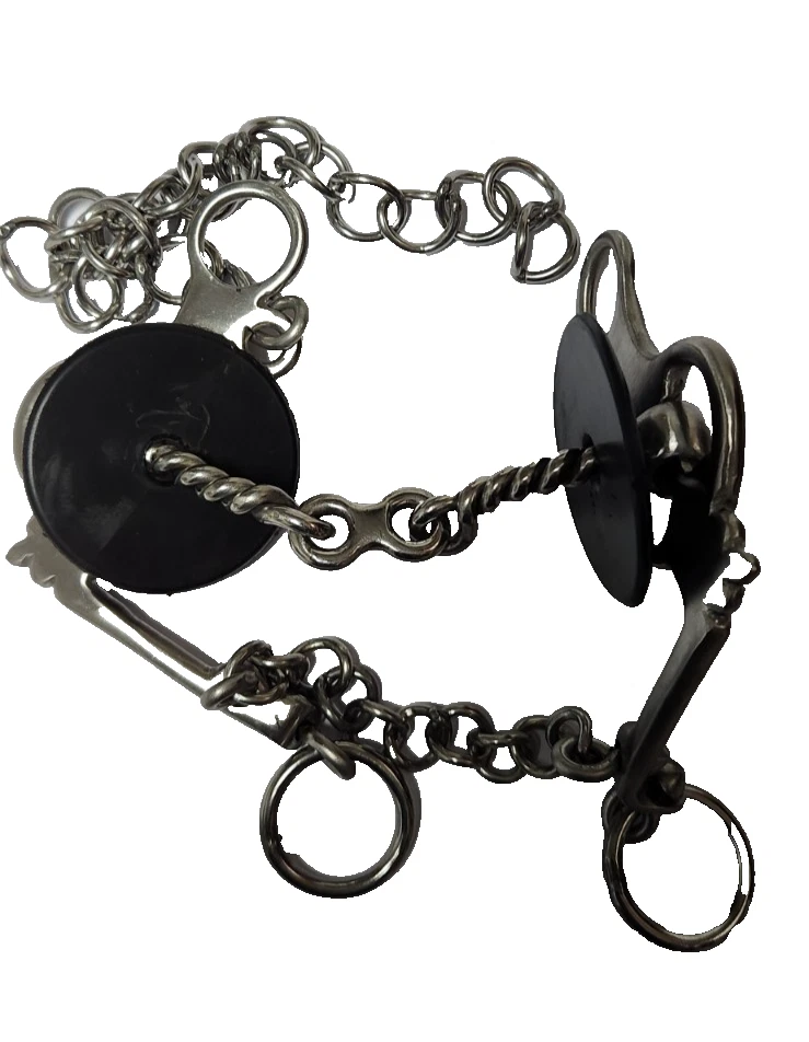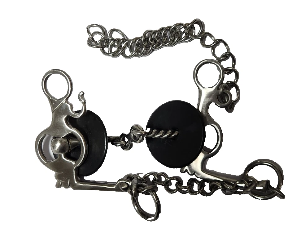 Beautiful 100% handmade by Colombian's craft masters, especially for the Paso Fino horse, perfectly constructed with the finest quality materials. Bit with L Shank, mouthpiece flex into a curve and it is made of steel and rubber guards at the ends of the mouthpiece.
